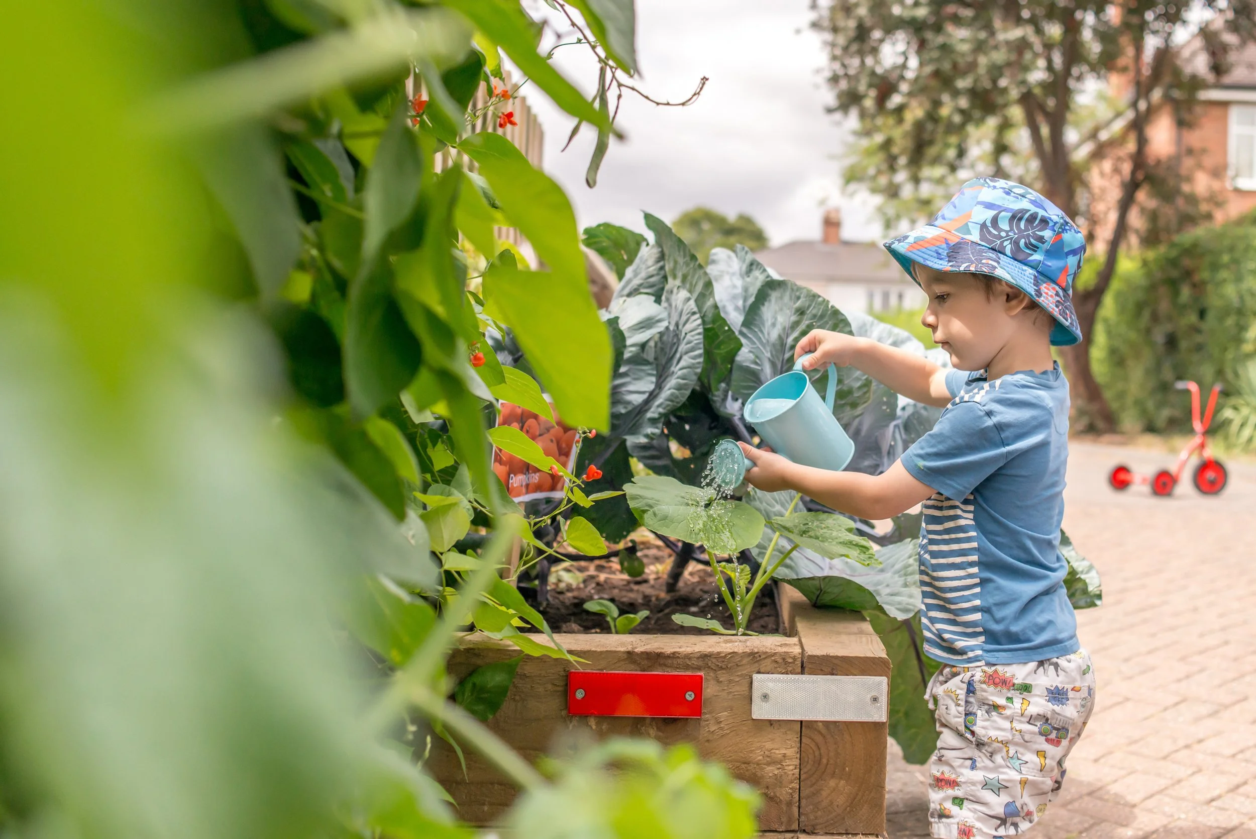 To complement our inside spaces, each group has access to their own secure outside area where they can experience the sounds, smells and sights of the day. Along with our small secret garden, we also have a larger secure playground that we use regularly so that your child can run, jump, and climb!